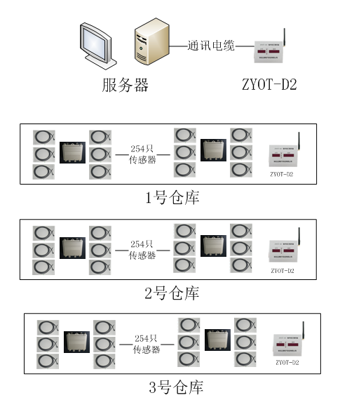 l 服務(wù)器可管理多達(dá)254個(gè)倉(cāng)庫(kù),每個(gè)倉(cāng)庫(kù)可管理254個(gè)無(wú)線測(cè)溫傳感器