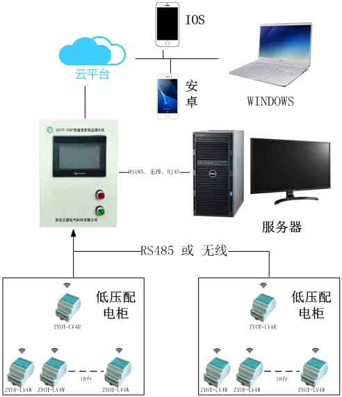 低壓柜溫度在線監測系統是針對低壓開關柜接頭、高低壓電纜的電纜端頭、中間頭因絕緣老化或接觸不良等故障的早期預測而設計,能有效防止故障的發生。